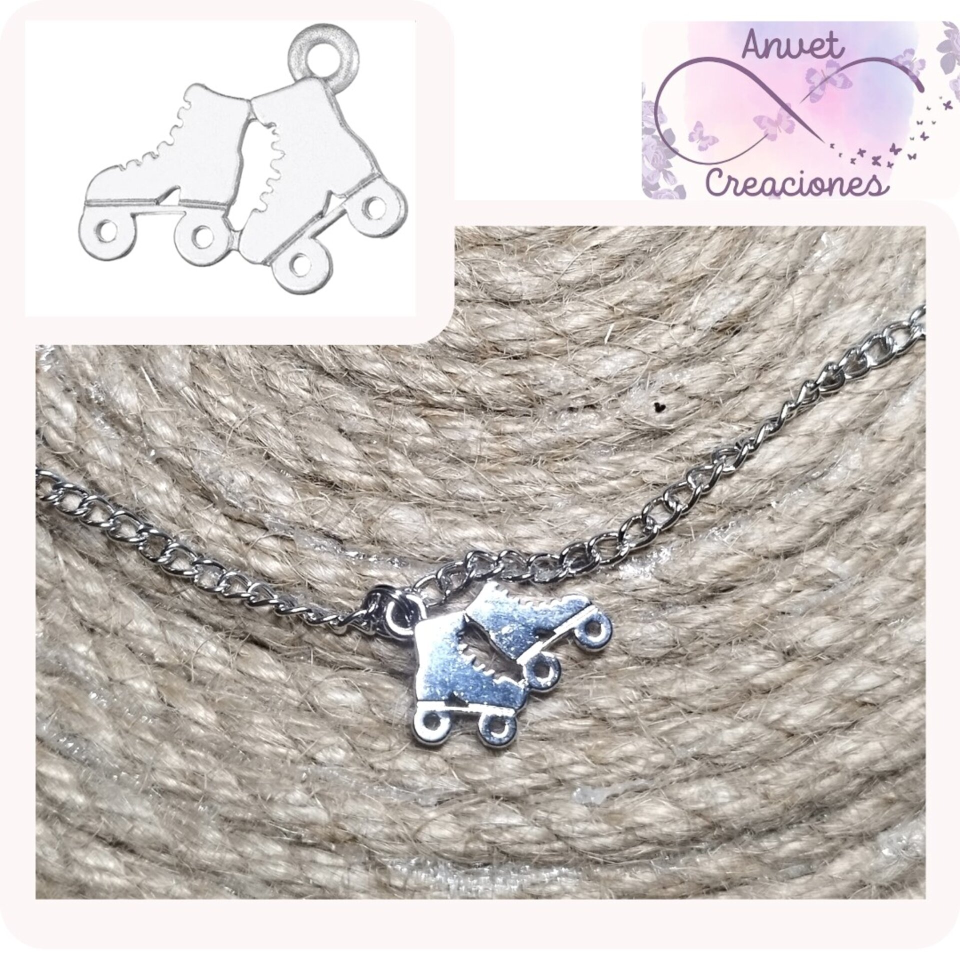 Cadena con colgante de patines y chapita en nácar con la inicial del/a patinador/a. Ideal para regalar!